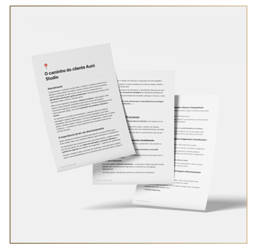 Um material que apresenta, etapa por etapa, como o cliente percorre o Auni Studio, do primeiro contato à entrega final, trazendo mais previsibilidade, alinhamento e segurança para ambos os lados.